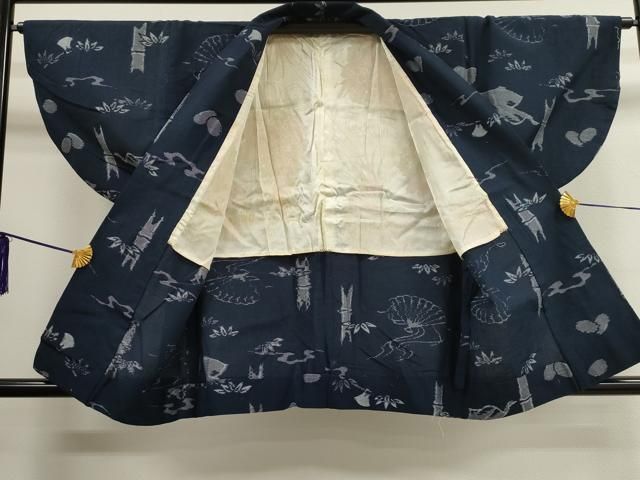平和屋着物 久留米絣 単衣 綿 道中着 檜扇笹竹文 dy