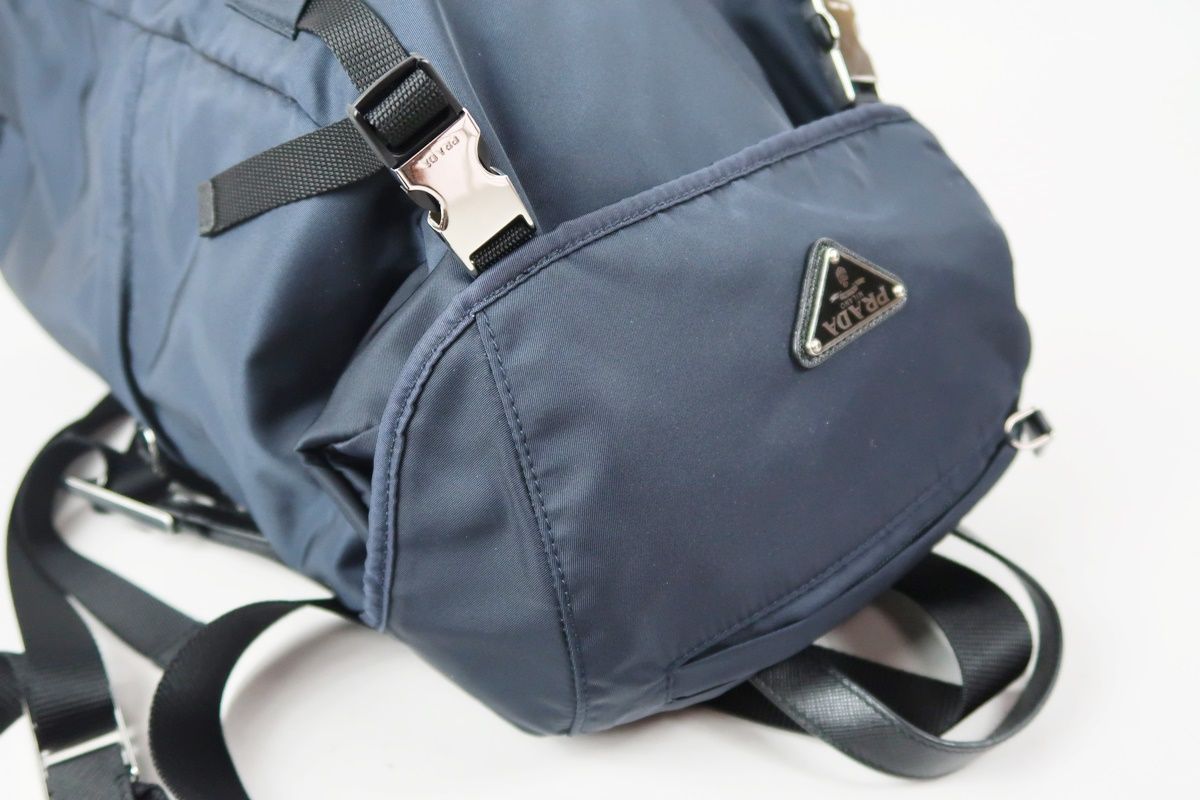 【超美品】PRADA プラダ ナイロン リュックサック バックパック トライアングル ネイビー×シルバー金具 【TE45】