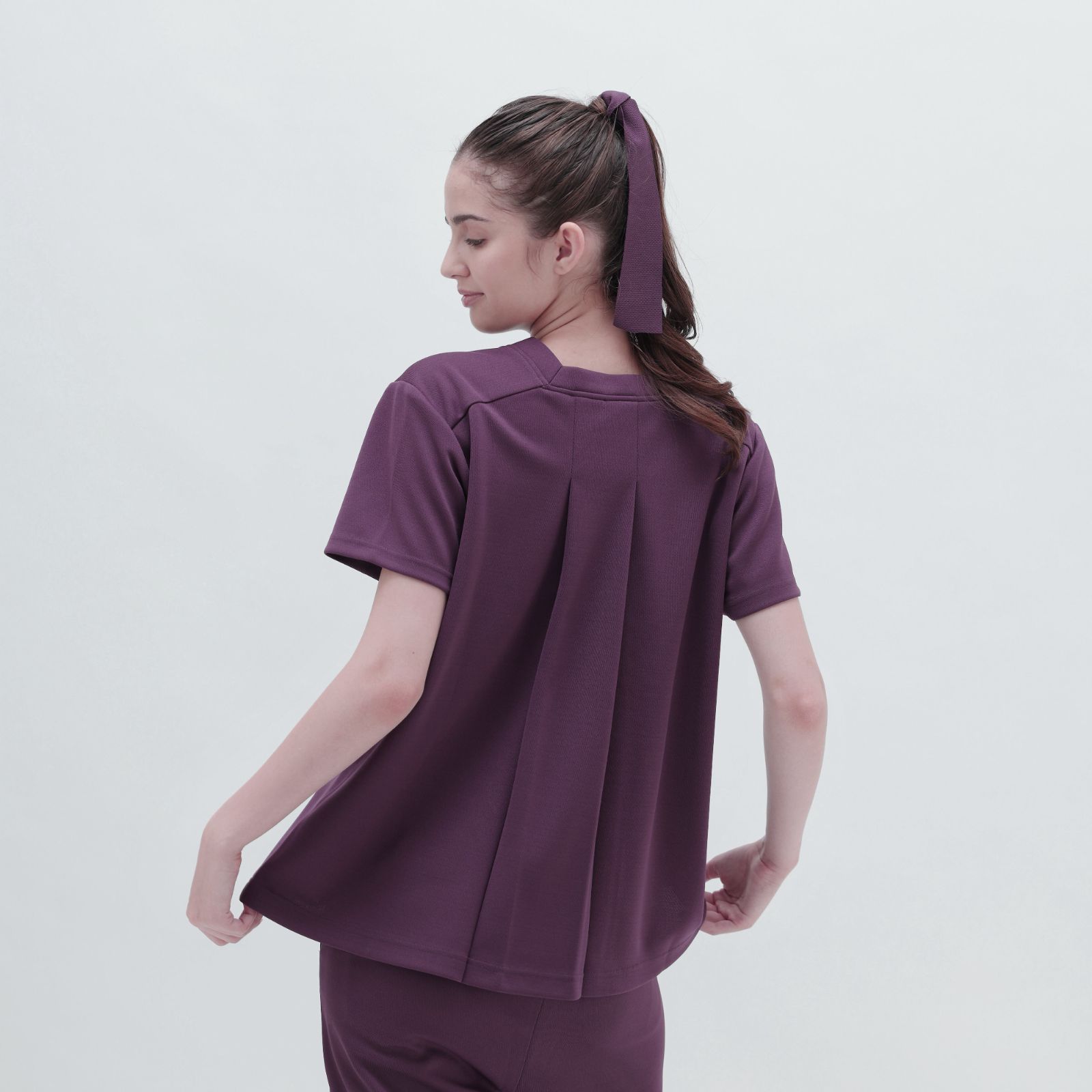 医療スクラブ 医療ユニフォーム おしゃれスクラブ Notch Neck Pleats Shirt_WINE 04