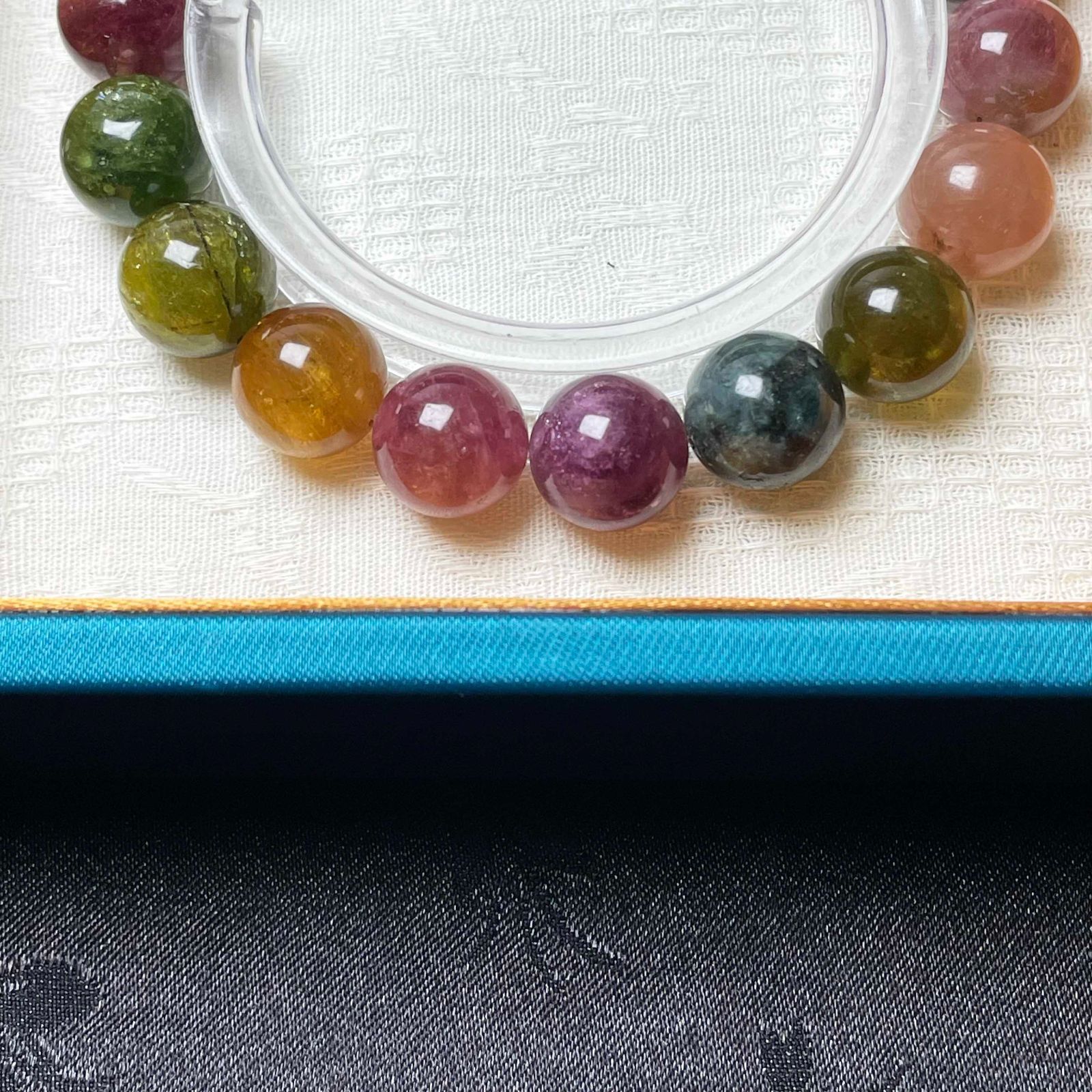 ③天然石のため傷、クラック(内部の割れ)、インクルージョン(内部の気泡や不純物)、ブレスレットの玉のサイズに若干の不揃いがある場合があります。