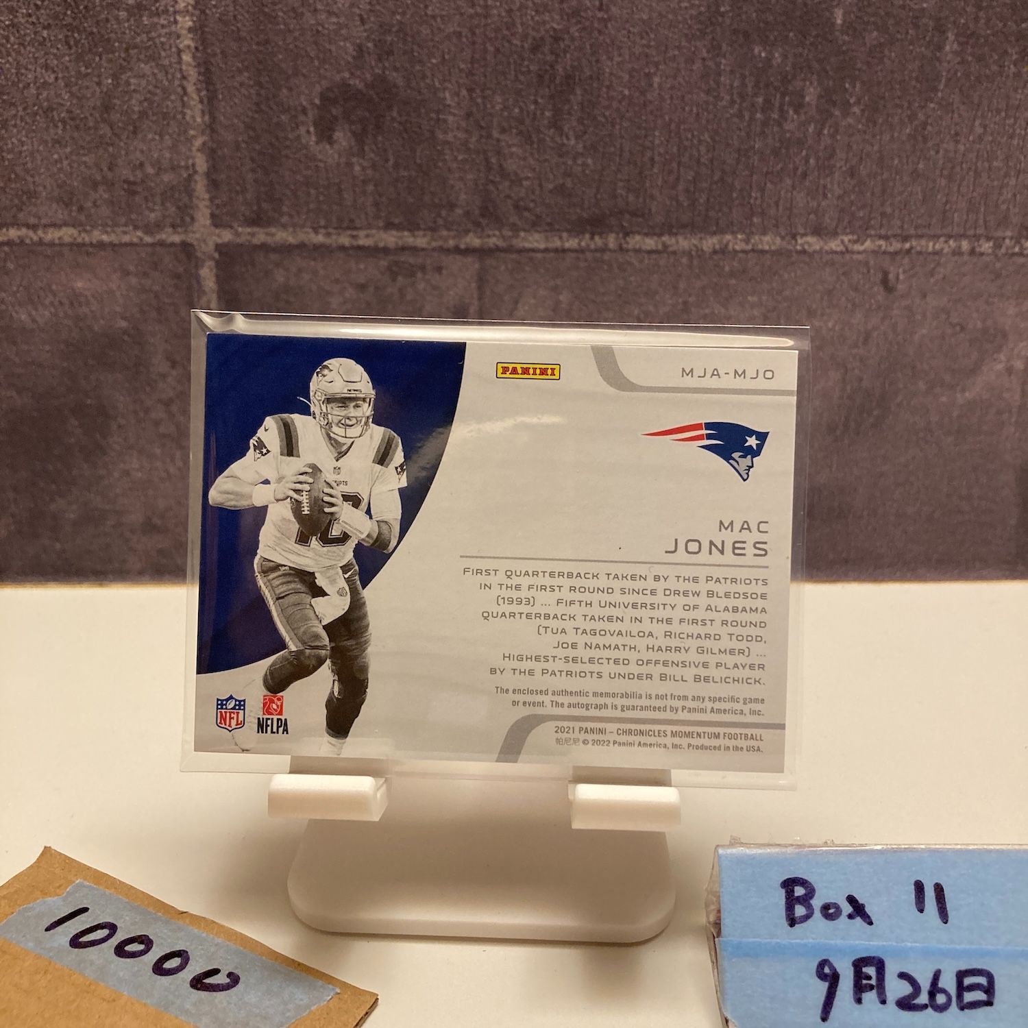 2021 Panini Chronicles Momentu Mac Jones 42 49 直筆サインカード England Patriots Triple ジャージ パッチ カード