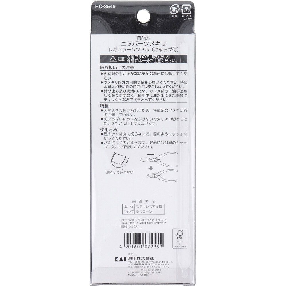 関孫六 ニッパーツメキリ レギュラーハンドル キャップ付 HC-3549 セット