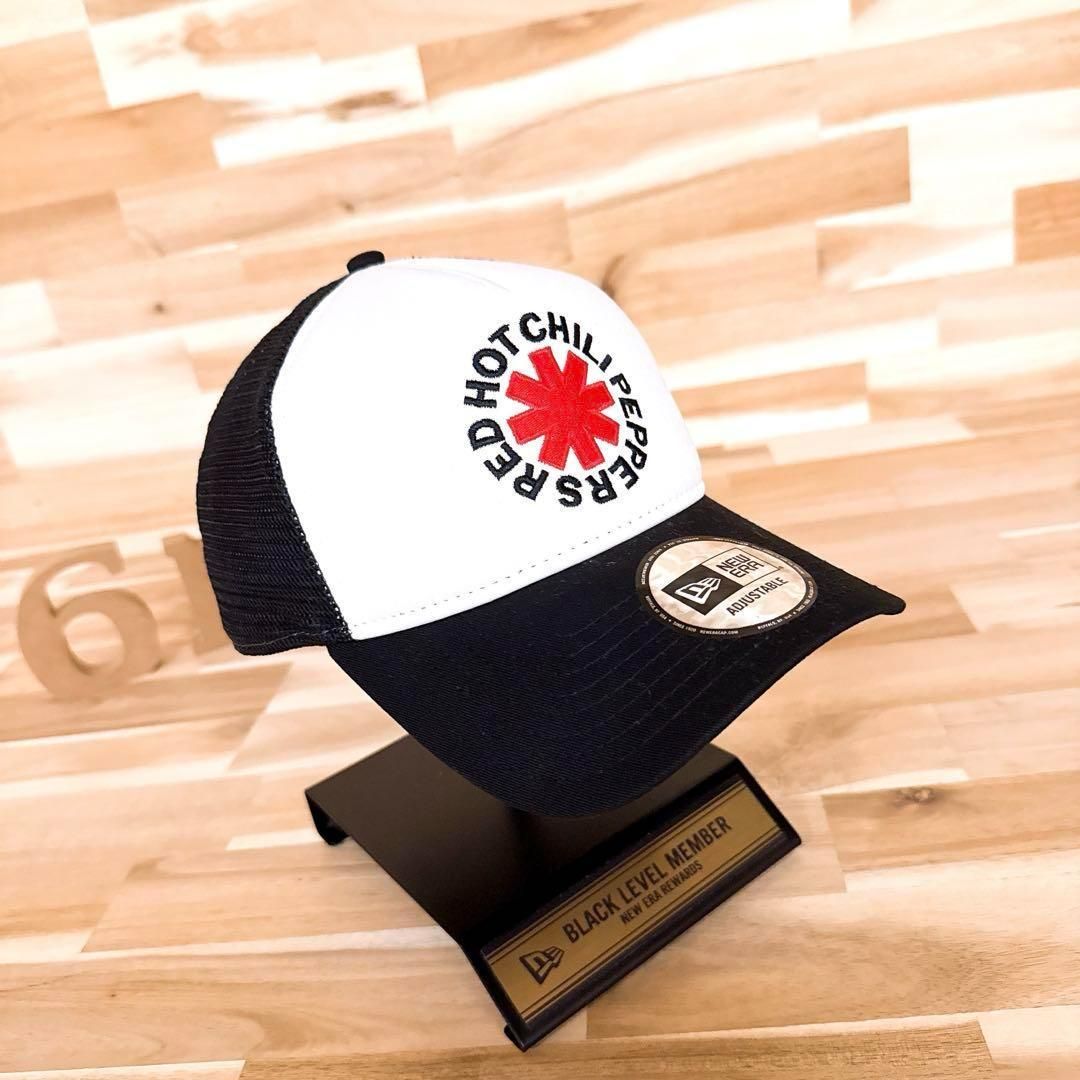 激 ニューエラ×レッドホットチリペッパーズ コラボ キャップ 白×黒 メッシュ トラッカー バンド ロック レッチリ