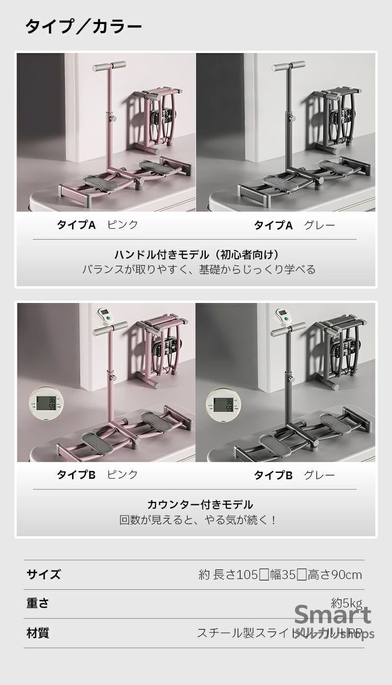 スキー運動トレーナー スキーマシン トレーニング器具 レッグトレーニング 太ももシェイパー 美脚 筋トレ器 室内運動 骨盤底筋エクササイズ レディース ダイエット フィットネス 開脚運動 ピンク グレー