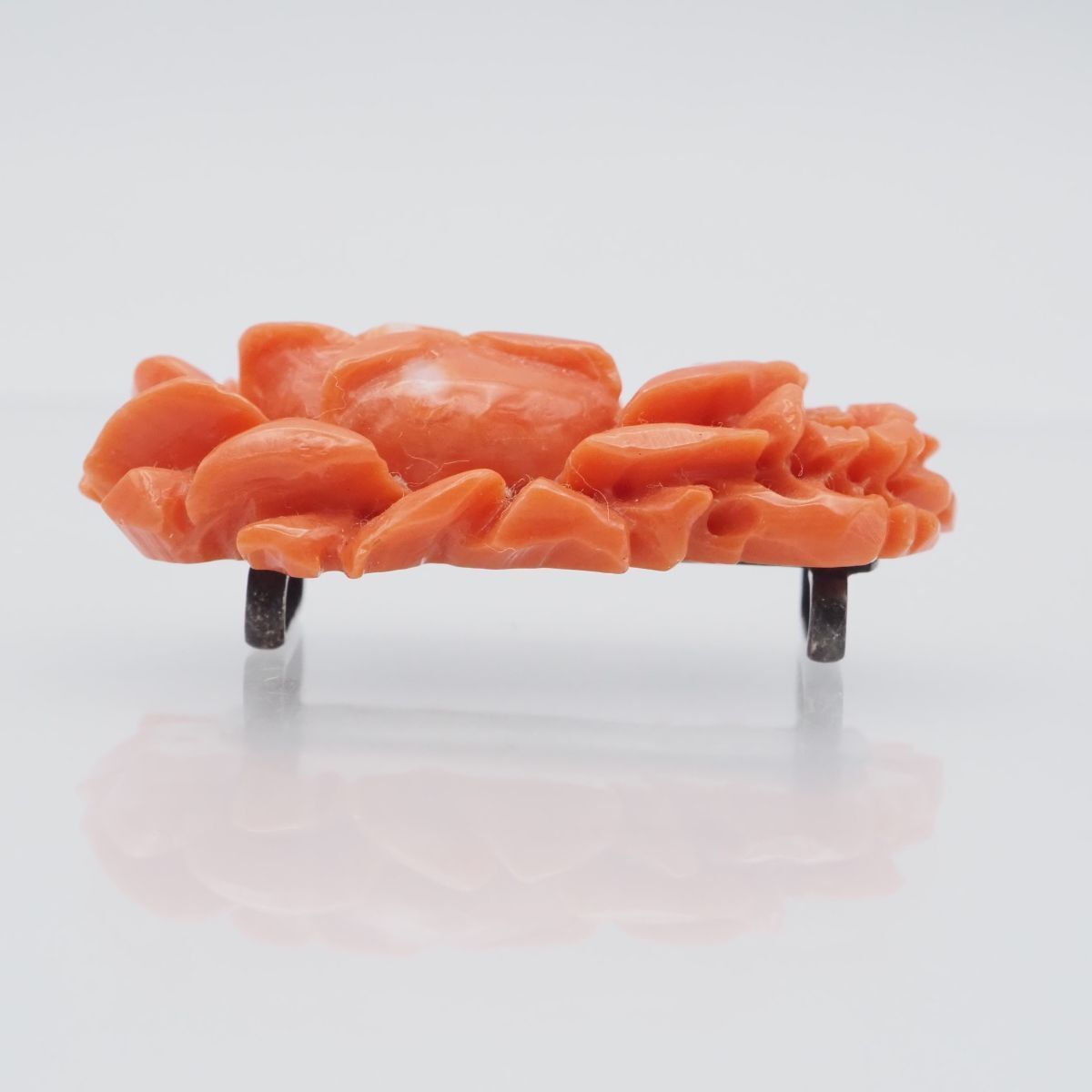 F 910 珊瑚 サンゴ 帯留め 花彫刻 デザイン シルバー 和装小物 誕生石