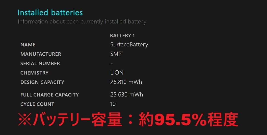 バッテリー状態:画像をご参考ください(※バッテリーは消耗品のため、保証致しかねます。またバッテリー状態はあくまで参考値のため、実際の稼働時間を保証するものではございません。)