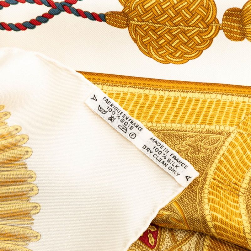 エルメス カレ90 POSTE ET サーベル飾袋 ホワイト ゴールド マルチ シルク レディース HERMES 1-0231486
