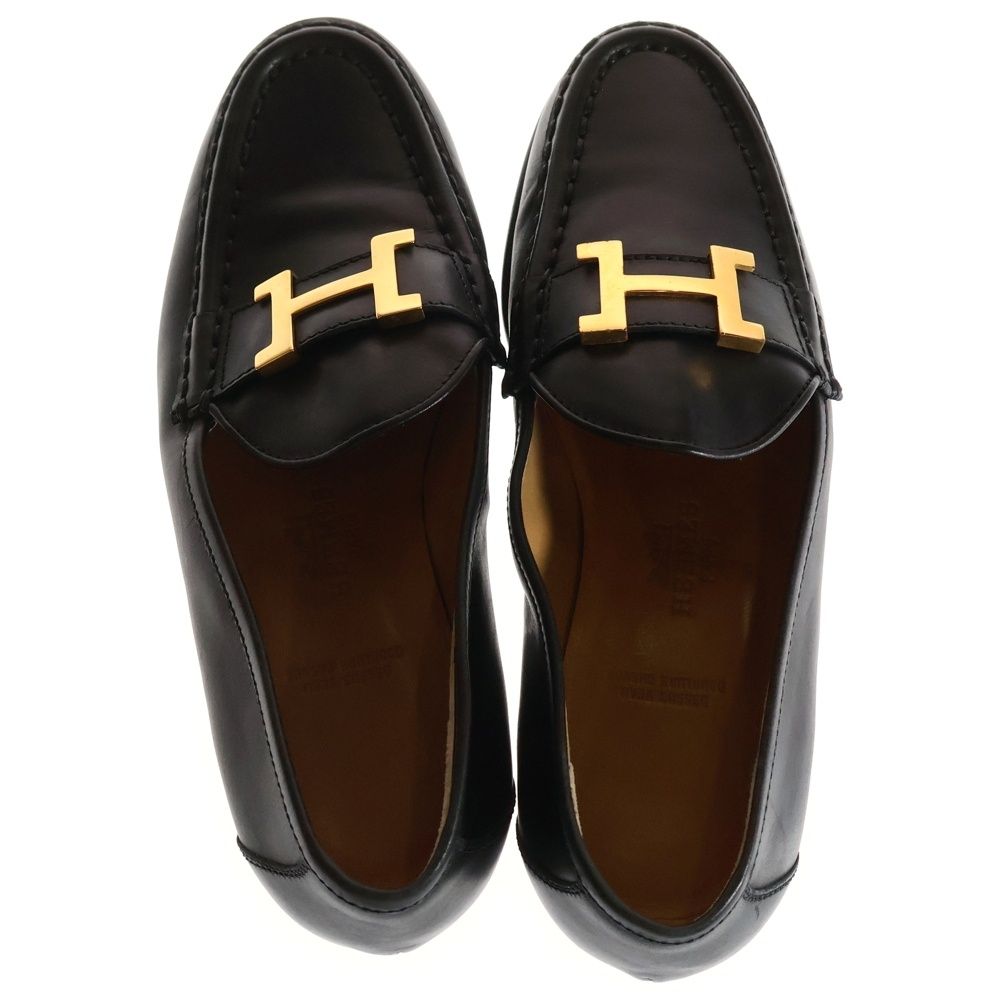 HERMES エルメス コンスタンス Hロゴプレート レザー ローカットシューズ ローファー ゴールド金具 ブラック レディース