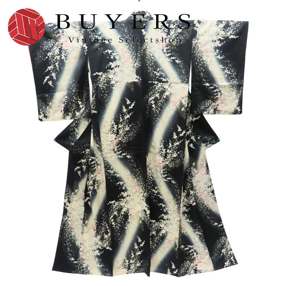 訪問着 付下 正絹 黒 白 花と蝶 和装 呉服 和服 きもの レディース 女性