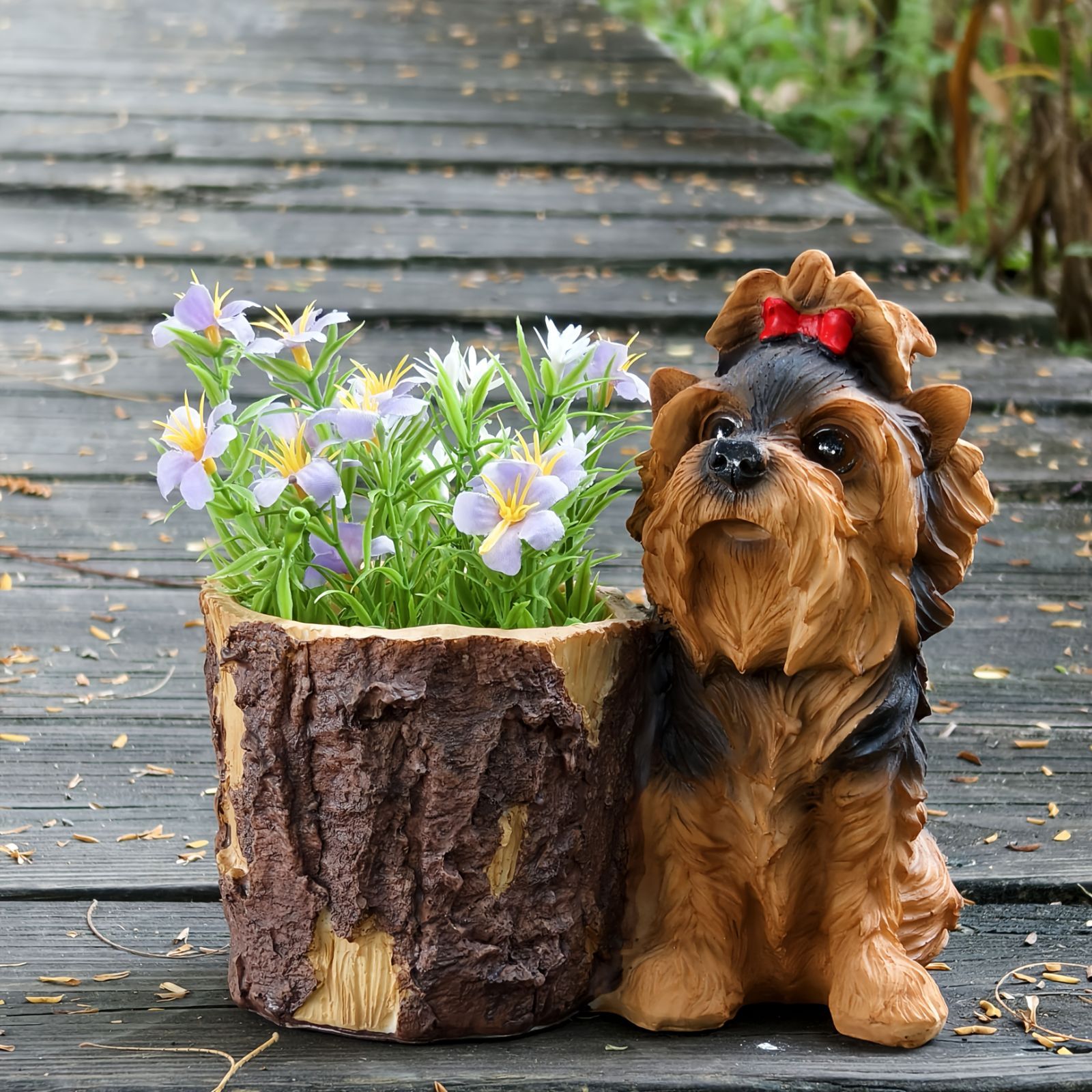 可愛いヨークシャーテリアが切り株の隣にいる鉢植えは、ガーデニング愛好者にぴったりの可愛いインテリアアイテムです!樹脂製のため軽量でありながら、耐久性も抜群。屋内外を問わず、リビングや玄関、お庭で安心して飾ることができます。多肉植物やサボテンを植えれば、さらに魅力的な空間が広がります。癒しグッズとしても最適です!