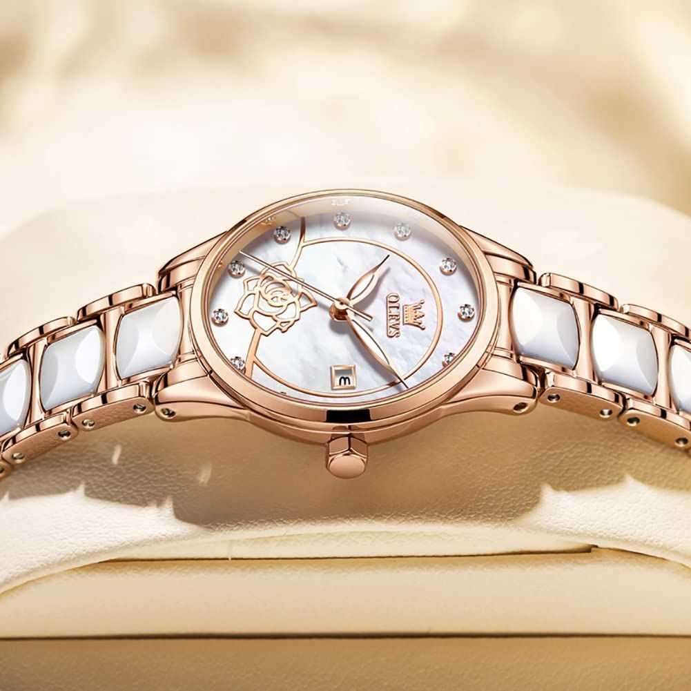 OLEVS うで時計 レディース 人気 見やすい 日本ムーブメント かわいい 日付 夜光 防水 バレンタイン プレゼント 白