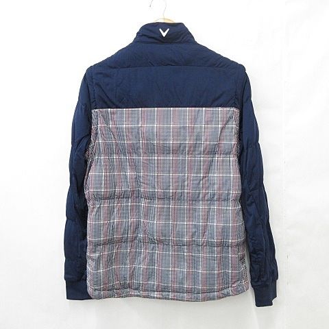 キャロウェイ ジャケット ベスト ゴルフ スポーツウェア 2 WAY 中綿 ロゴ ジップアップ チェック柄 千鳥柄 紺 白 ネイビー ホワイト L