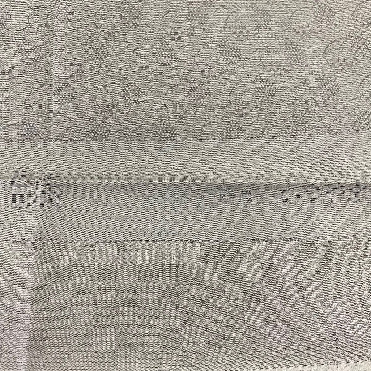 お召 身丈153.5 cm 裄丈63 S 袷 勝山織物監修 落款 草花 市松 灰色 正絹