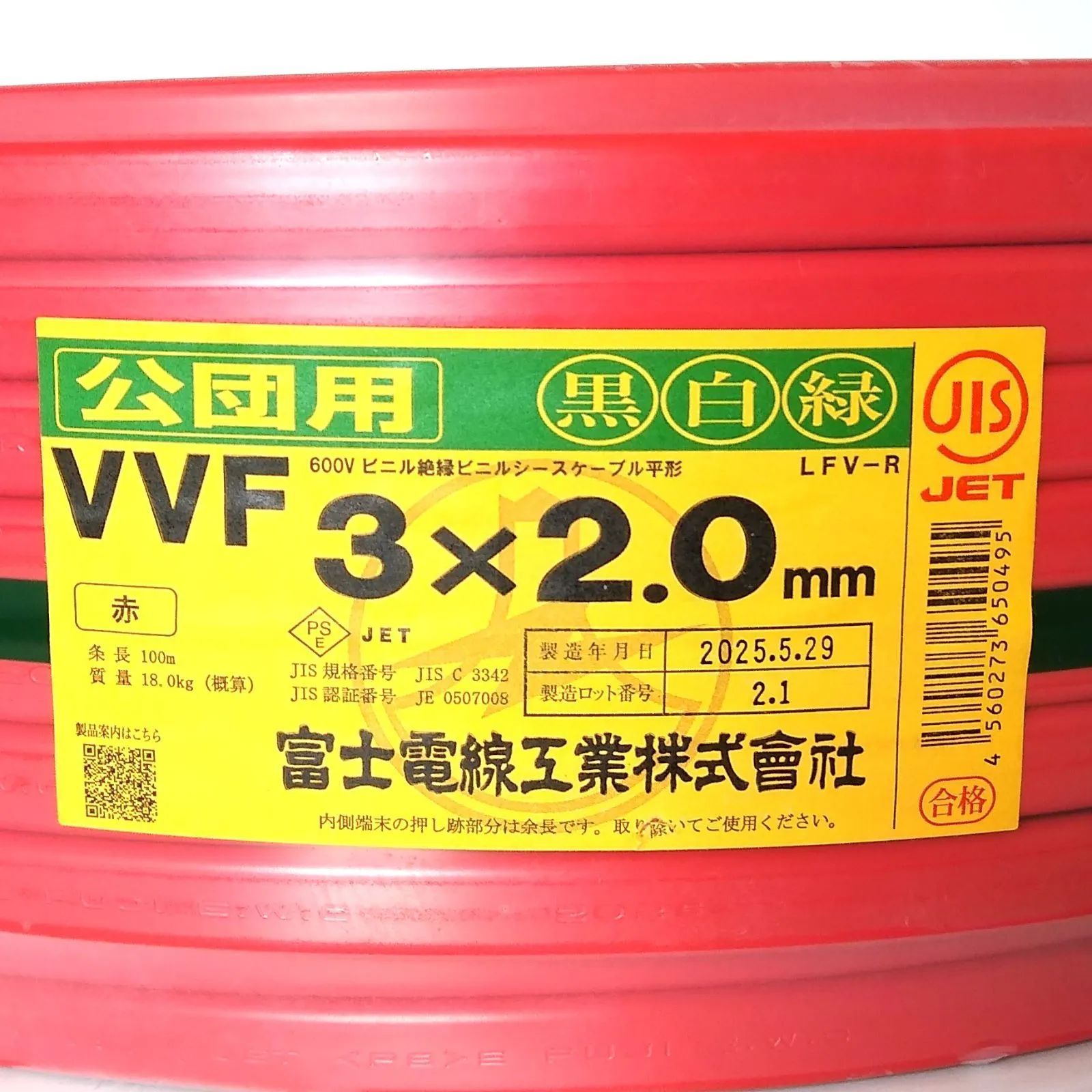 富士電線 公団用 VVF3×2.0㎜ (赤)黒白緑