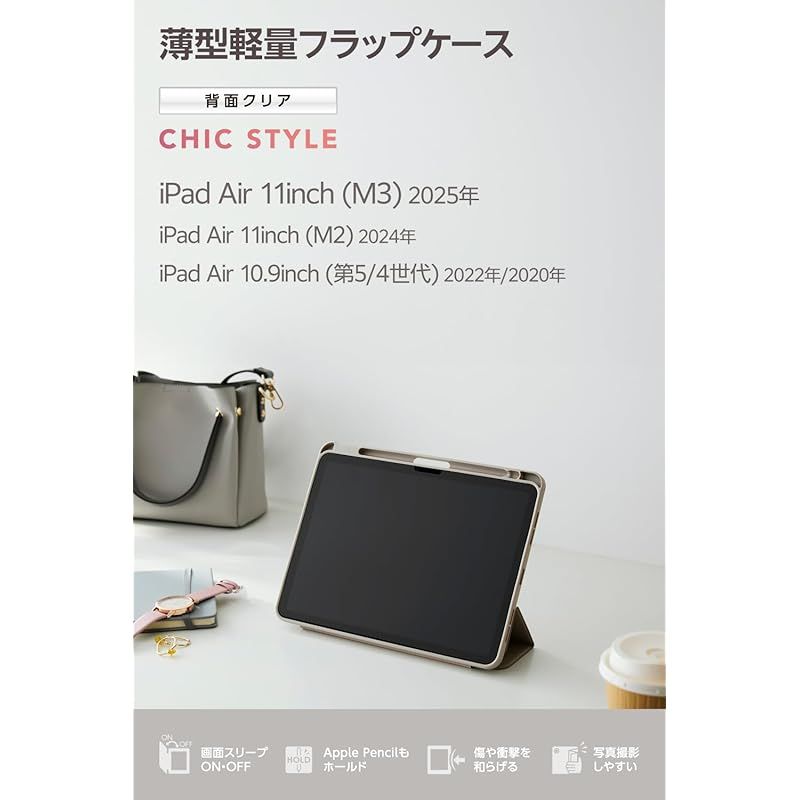 商品名:【新品】 エレコム iPad Air 11インチ (M3/M2) 2025/2024年 ケース カバー フラップ ソフトレザー 背面クリア スリープモード タッチペンホルダー付き CHIC STYLE グレージュ TB-A25MWVJM3GB