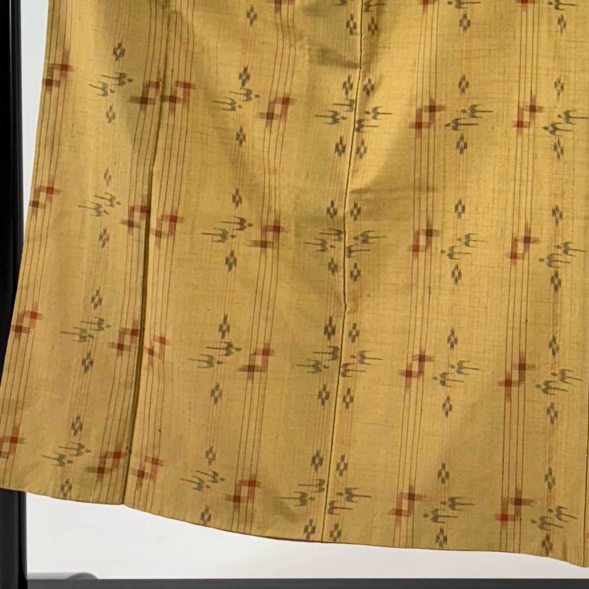 紬 身丈151.5 cm 裄丈62 S 袷 燕 井桁絣 黄土色 正絹 秀品