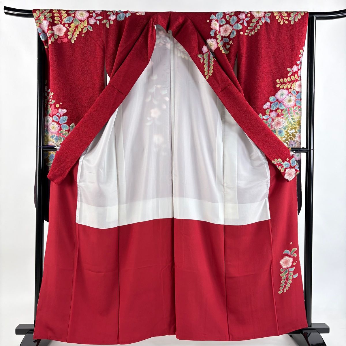 振袖 身丈161 cm 裄丈66.5 M 袷 やまと 辻が花柄 金銀彩 ぼかし 赤 正絹 名品