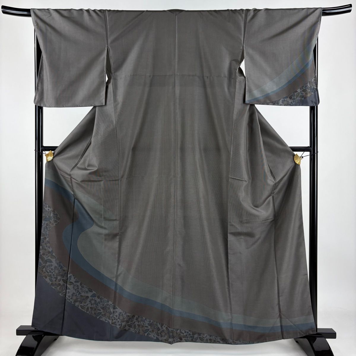 付下げ 身丈161.5 cm 裄丈69 L 袷 袋帯セット 紬地 霞 草花 金彩 灰色 正絹 秀品
