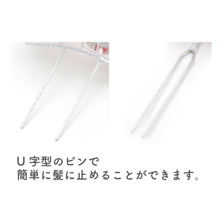 U字型のピンになっておりますので、簡単に髪に止めることができます。