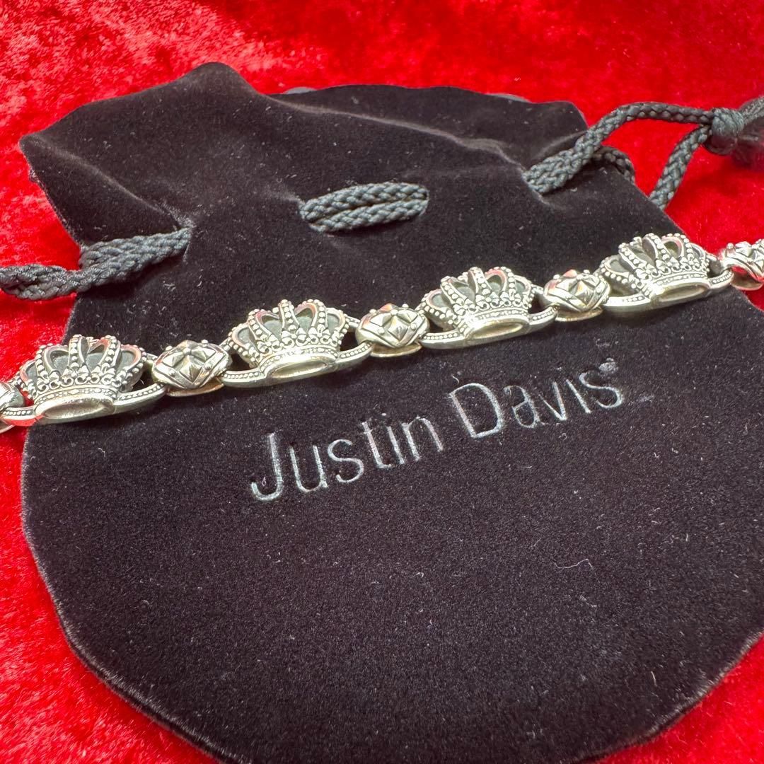 マーちゃんコメント:定番のジャスティンデイビス クラウンブレスレット SML QE SBJ118です。Tバータイプなのでシンプルで付けやすいです。重量あります。綺麗な商品です。