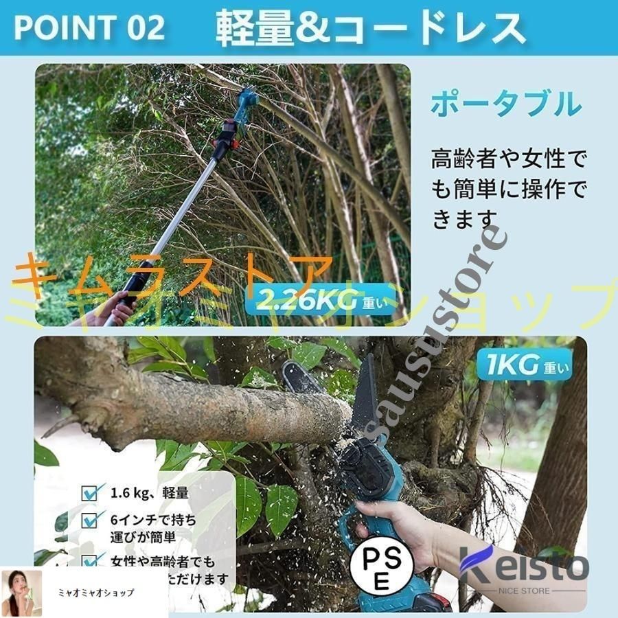 高枝切り電動チェーンソー 充電式 130-200cm伸縮可能