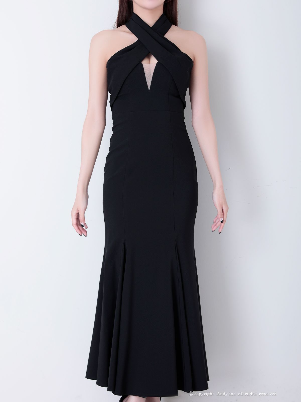 クロスホルターxバストシアーの組み合わせが大人の色気醸し出すストレッチロングドレス♡