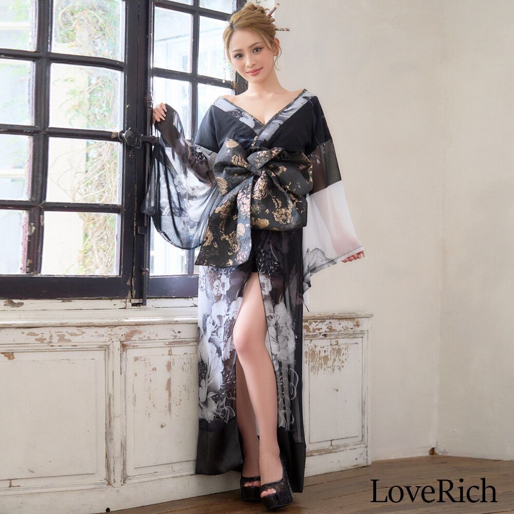 LoveRich ラブリッチ ライン 2 シフォンフラワー豪華花魁着物ドレス イベント コスプレ キャバドレス 1560