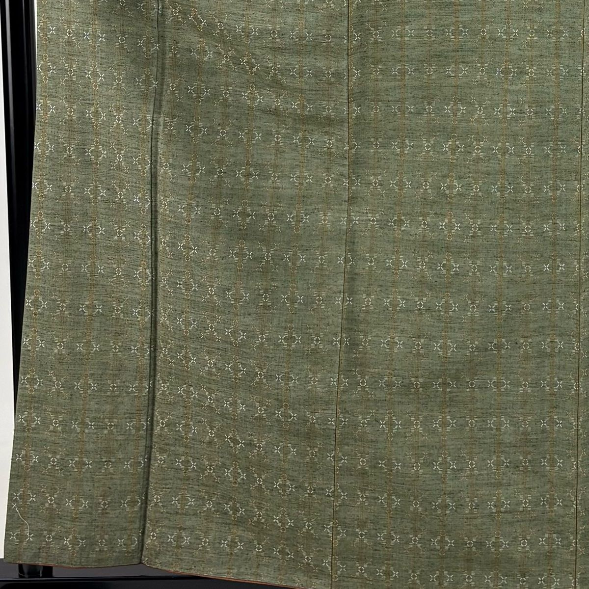 紬 身丈160 cm 裄丈63 S 袷 縞模様 幾何学模様 花織 茶緑色 正絹