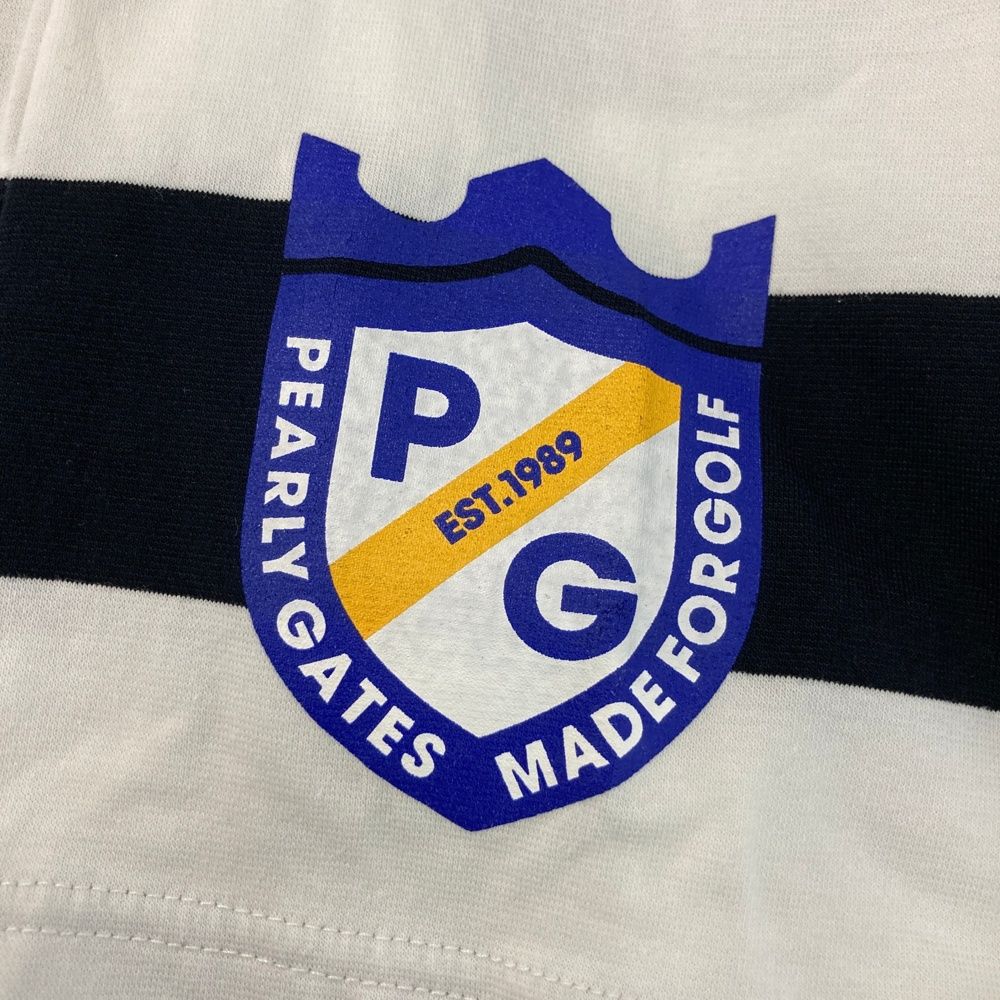 サイズ 4 PEARLY GATES パーリーゲイツ ハイネック 半袖Tシャツ ロゴプリント ボーダー柄 ホワイト系 ゴルフウェア メンズ ストスト