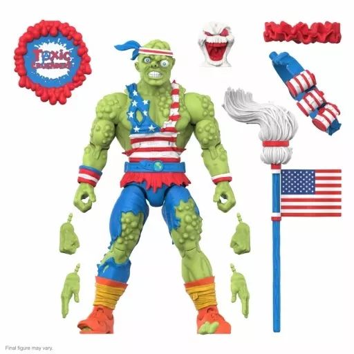 こちらは、ただトロマヴィルひいてはアメリカを愛するヒーローだから星条旗という訳では無く、幻となったプレイメイツ社フィギュアシリーズ2に合わせてプロトタイプが制作されたメールオーダー版トキシーの星条旗コスチュームをイメージして作られた、コダワリと愛の詰まったアイテムを展開する「スーパー7」ならではのアイテムとなっております。
