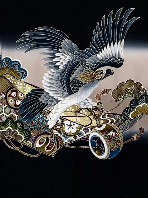 -黒地、鷹と鼓-