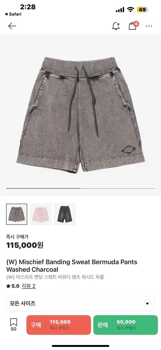 MISCHIEF ミスチーフ バンディング スウェット バミューダ パンツ ウォッシュド チャコール