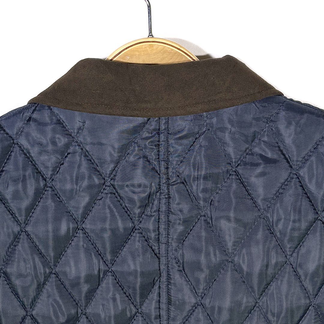 バブアー キルティングジャケット テーラード チュニジア製 襟スウェード エルボーパッチ ネイビー BARBOUR サイズM DZ 0745