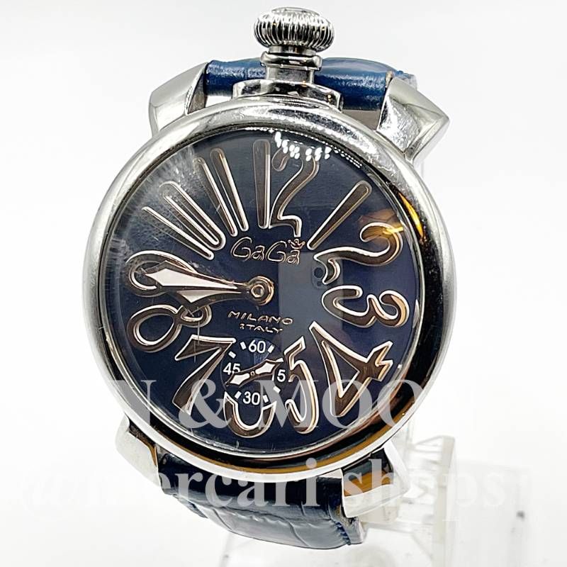 稼働 GaGaMILANO ガガミラノ マヌアーレ48 メンズ腕時計 手巻き ネイビー 紺 OJ 10-2