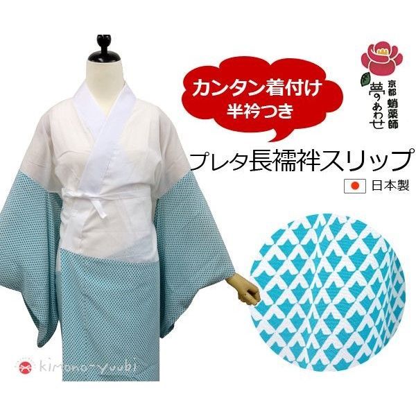 長襦袢スリップ〔 〕 京都蛸薬師 夢のあわせ うろこ ブルー M Lサイズ 長襦袢 洗える きものスリップ 下着