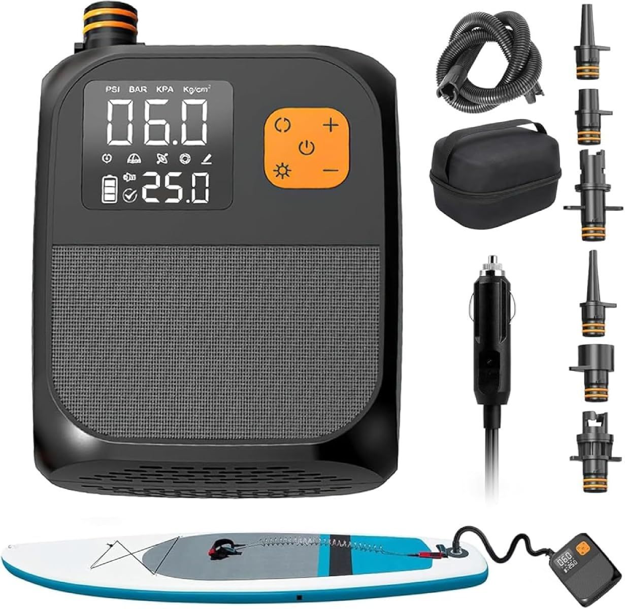 OBEST sup 電動ポンプ サップ 空気入れ 電動 25 PSI 6つのノズル付き DC 12 Vシガーソケット Type C対応 ポータブル 自動停止 過熱保護 ライト付き エアベッド パドルボード ゴムボート インフレータブルボート カヤック 電動エアーポン