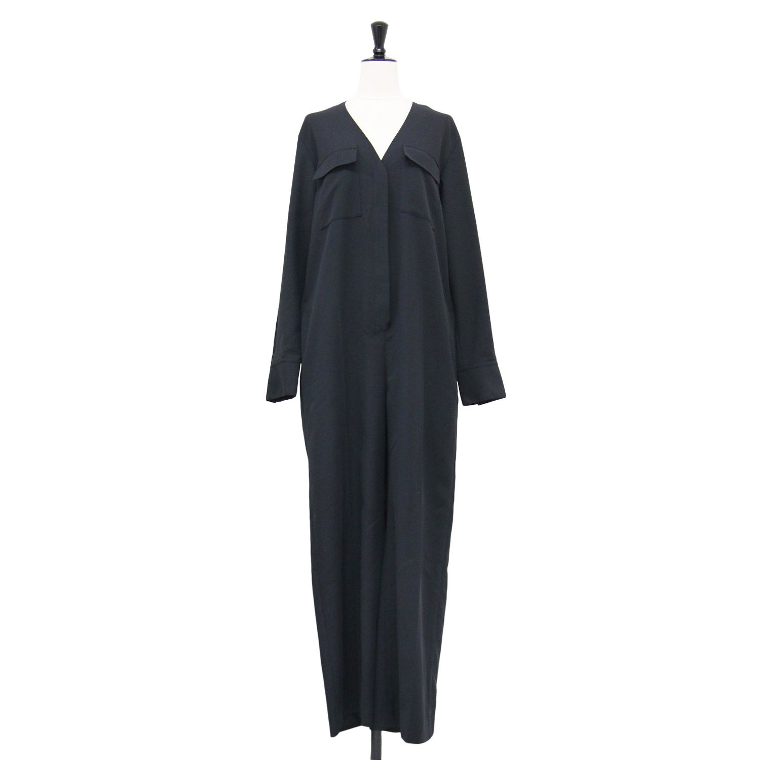 NOBLE ノーブル ブラック 黒 サイズ 25春夏 ライトカルゼ オールインワン ジャンプスーツ ワイド Vネック コットン ボトムス ズボン レディース