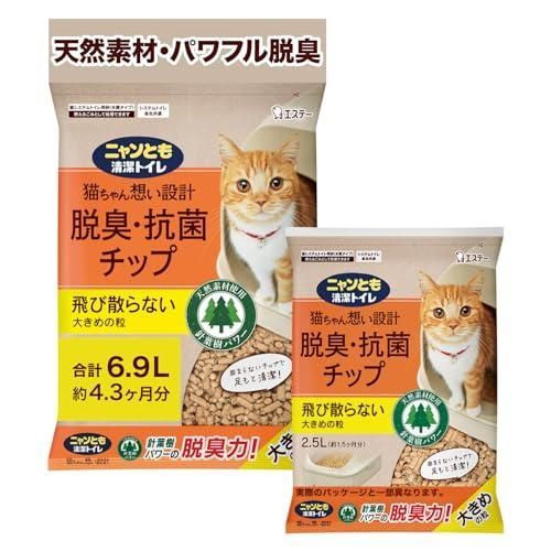 商品名:ニャンとも清潔トイレ 猫砂 [天然素材でパワフルに脱臭] 脱臭・抗菌チップ 大きめの粒 6.9L(4.4L+2.5Lまとめ買い) システムトイレ