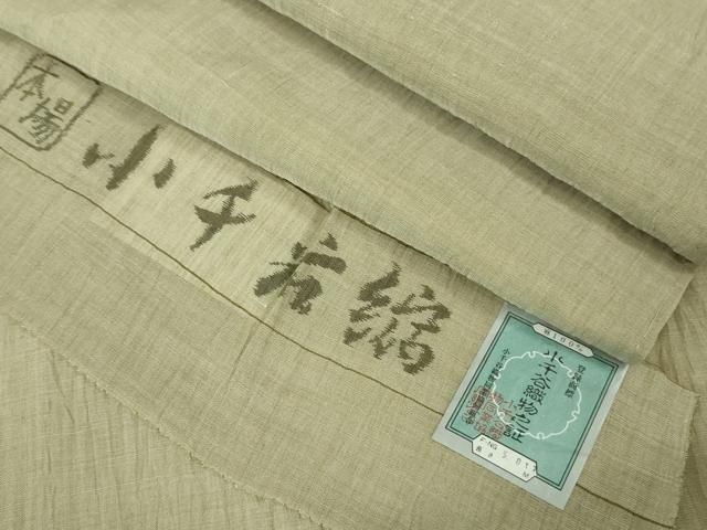 平和屋着物 上 夏物 男性 本場小千谷ちぢみ 麻 砂色地 証紙付き kh 5