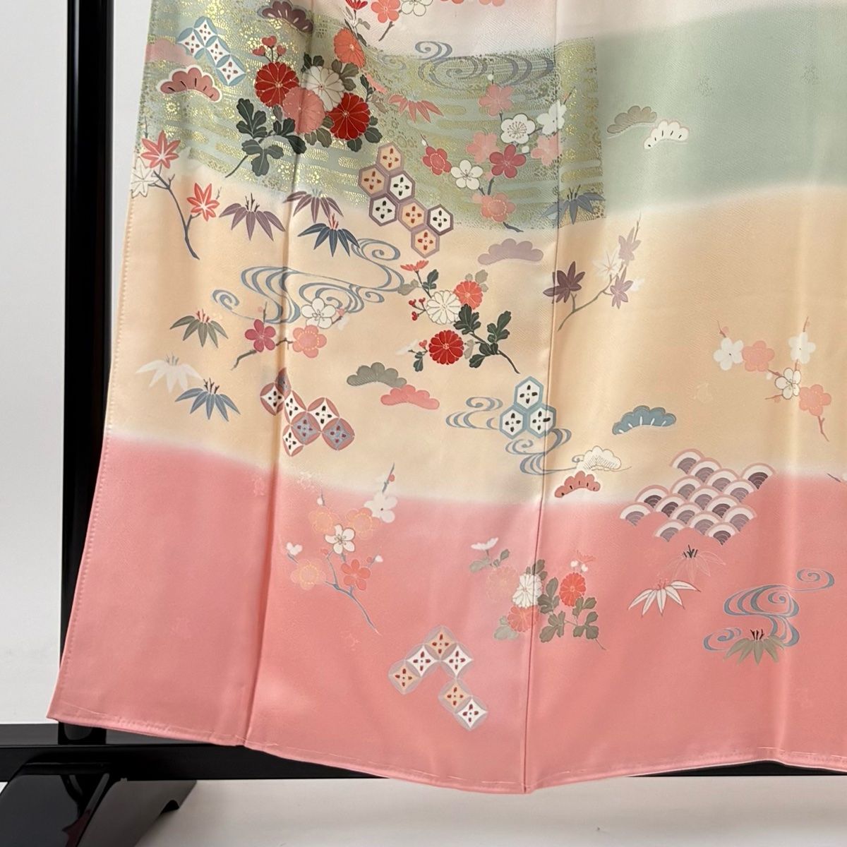 訪問着 身丈160 cm 裄丈63 S 袷 松竹梅 菊 金彩 ぼかし ピンク 正絹 秀品