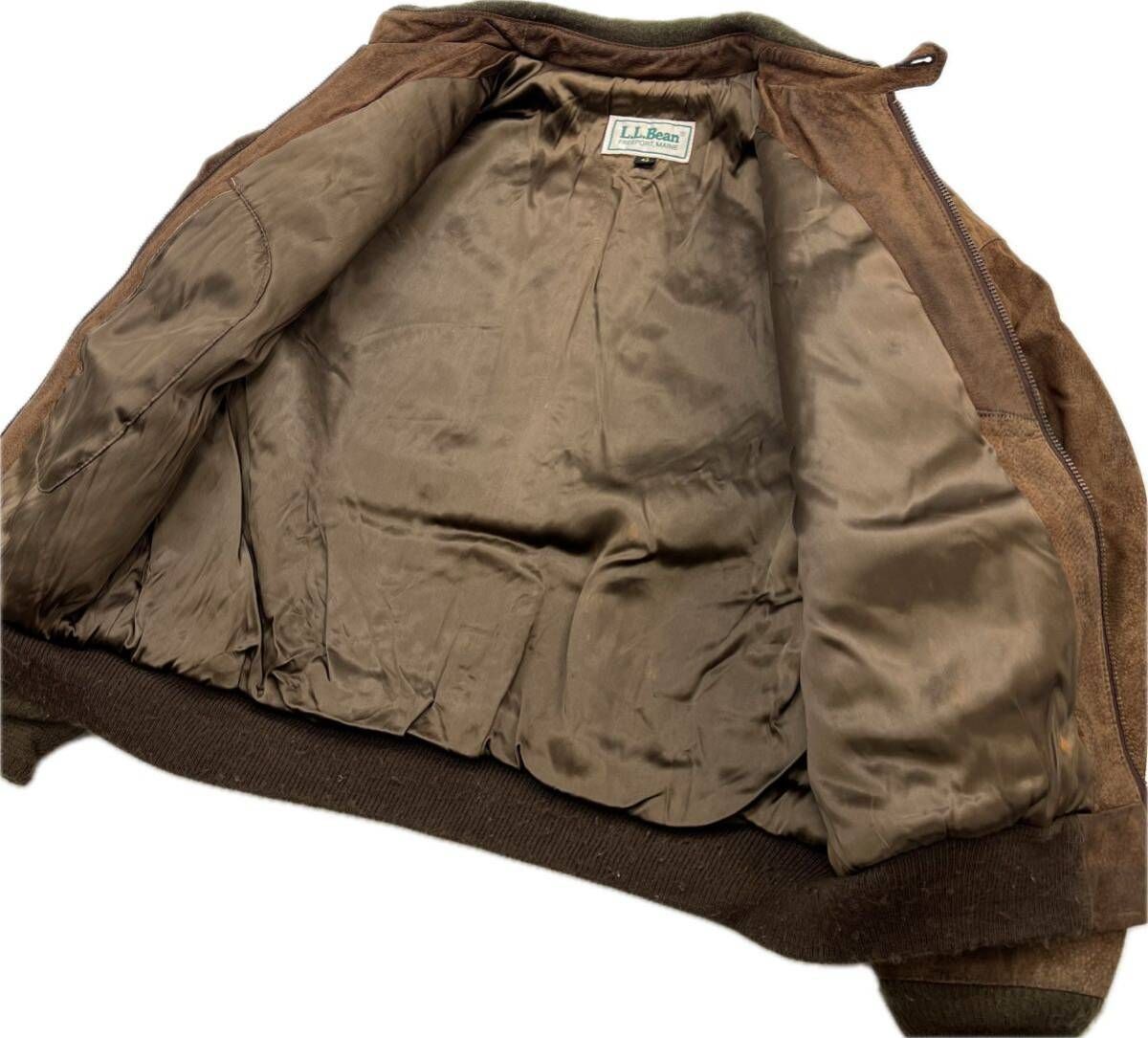 70 s 80 L Bean エルエルビーン ビンテージ ロケットタロン 中綿 スウェード ブラウン レザージャケット ブルゾン 42 古着 3843