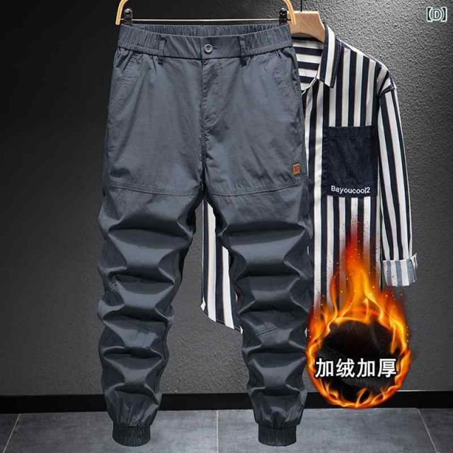 種類2 S 45-57.5 kg E ブラックパンツ 厚 メンズ 男性用 ファッション オシャレ シンプル 大人 かっこいい ストリート ヒップホップ HipHop 春秋 カーキ カジュアル パンツ 秋 コットン ハーレム