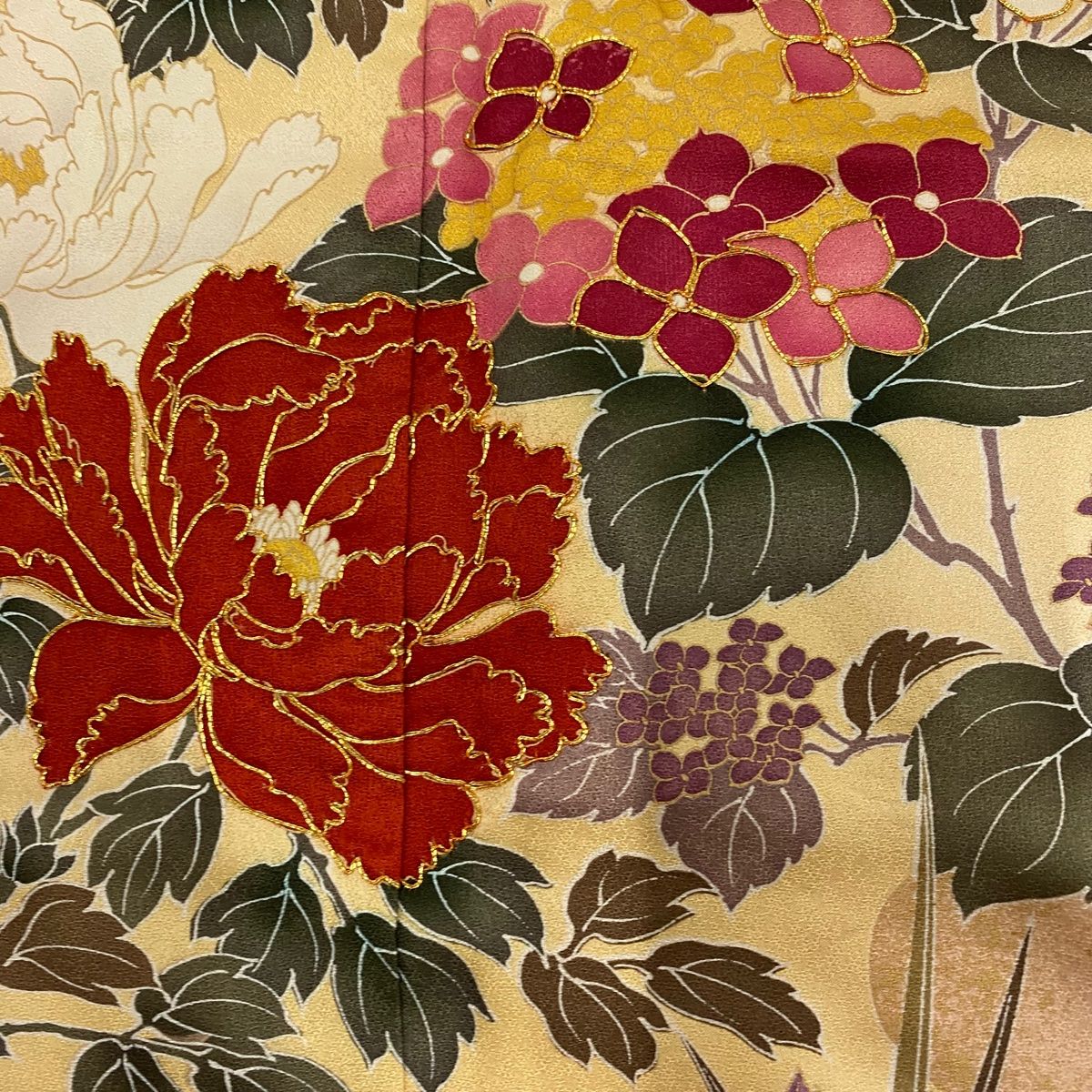 振袖 身丈168 cm 裄丈68 L 袷 牡丹 紫陽花 金糸 金彩 山吹色 正絹 秀品