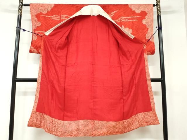 平和屋着物●長襦袢 袷 絞り 雲取飛鶴文 半衿刺繍 正絹 ud
