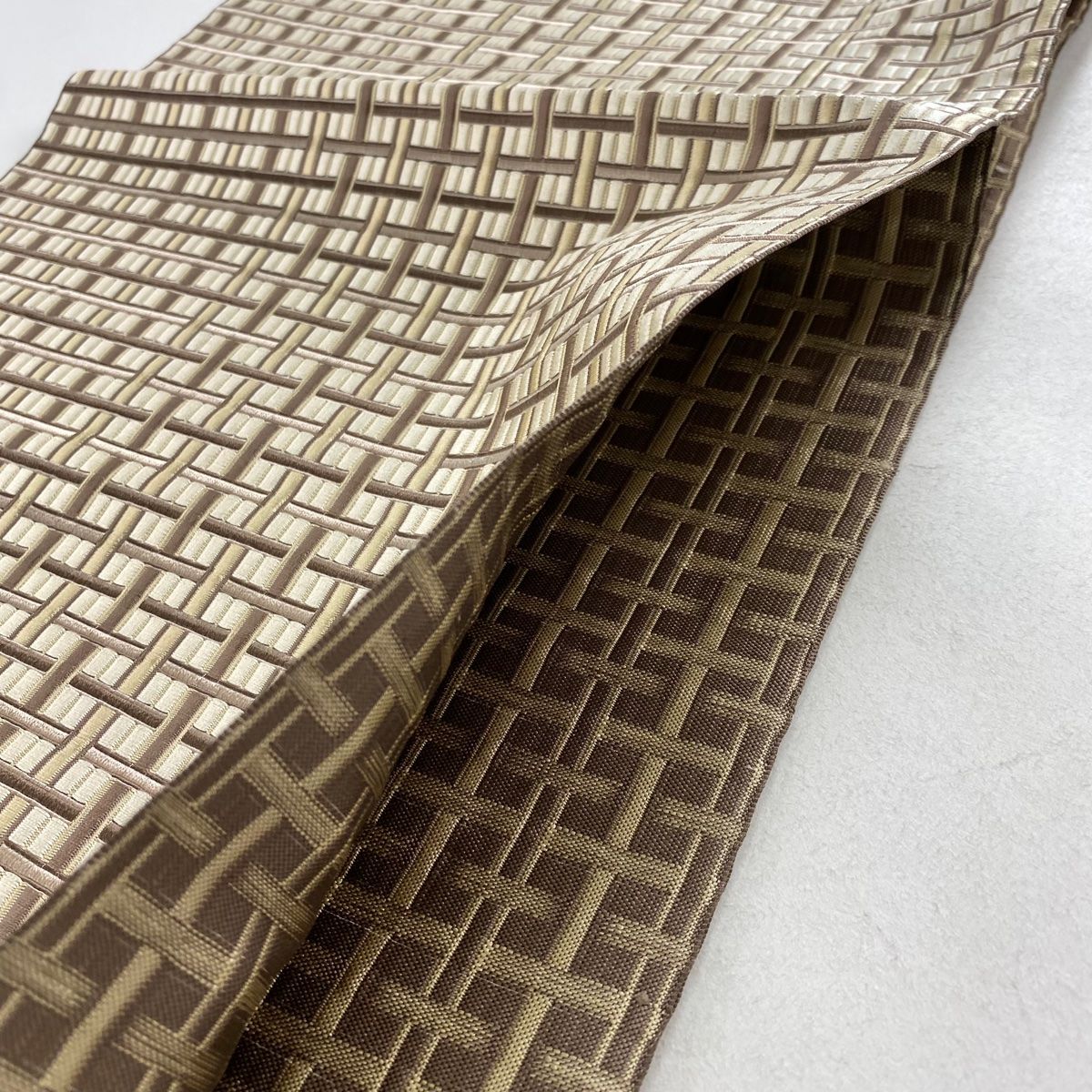 名古屋帯 秀品 八寸名古屋帯 松葉仕立て トンネル仕立て 幾何学模様 格子 クリーム 正絹