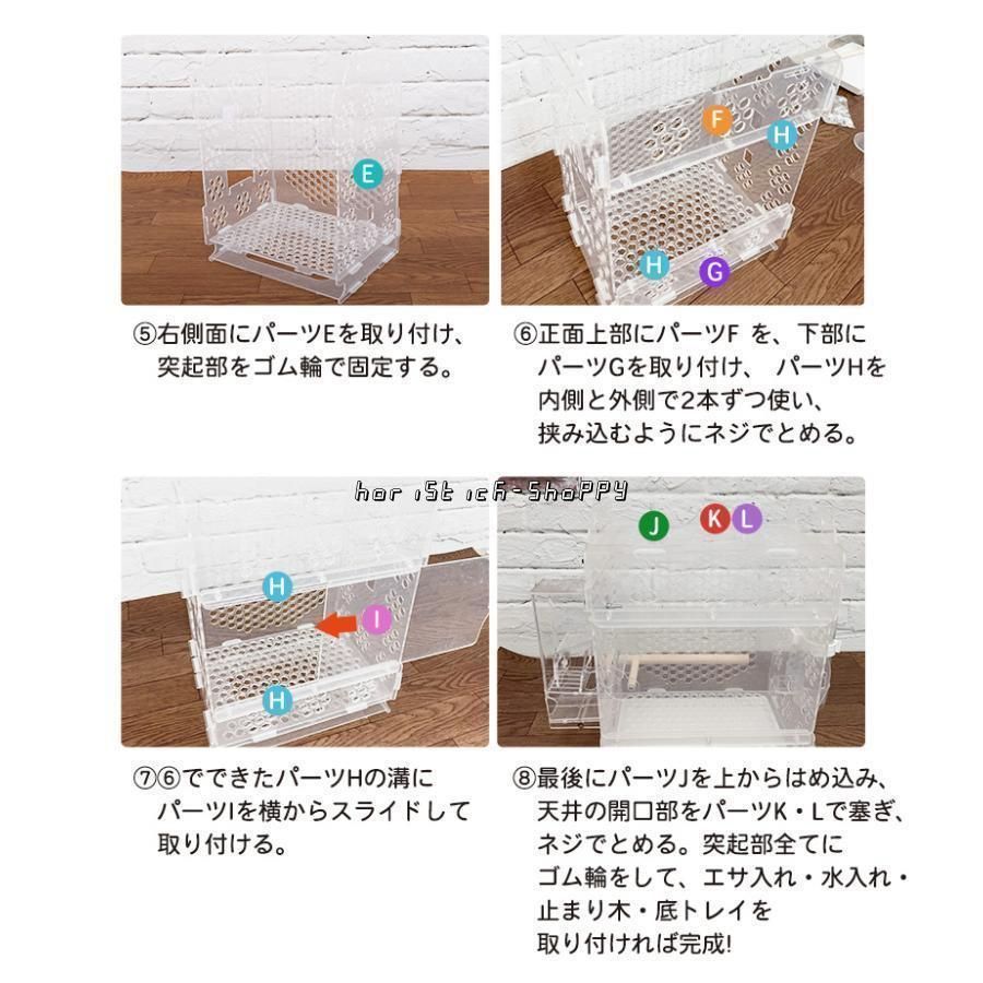 鳥かご ケージ ペット用品 アクリル プラスチック スライド 扉 鳥 小型 インコ 文鳥 小動物用 パーツ 組み立て式