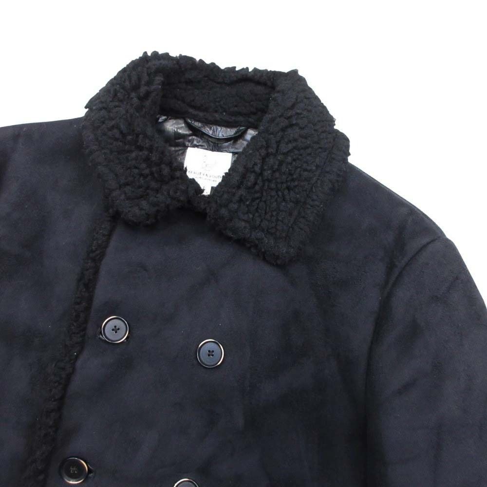 BEAUTY-YOUTH ビューティ-ユース アローズ フェイクムートン Pコート ピーコート ボア ジャケット L 黒 ブラック メンズ 古着