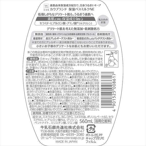 -12点セット カウブランド 無添加 保湿バスミルク ボトル 560 ml 牛乳石鹸共進社 入浴剤