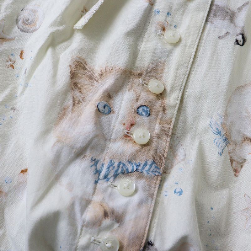2025 AW ピンクハウス PINK HOUSE さざ波とねこプリントワンピース |オフホワイト ピコフリル フード ボリューム