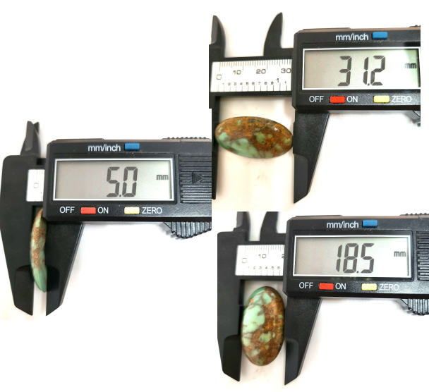 材質:ターコイズサイズ:画像のノギスにて確認ください。重さ15.2ct神秘的なマトリックス模様の入った石です。石というのは、1点物です。沢山あるようで、石は出会い。同じ石はありません。お気に入りが見つかったらお早目に決断ください。